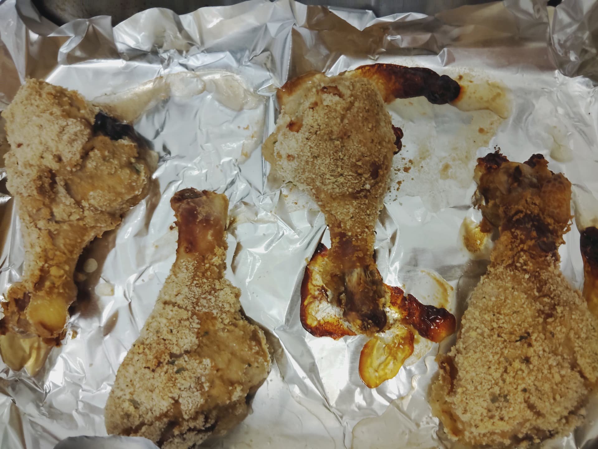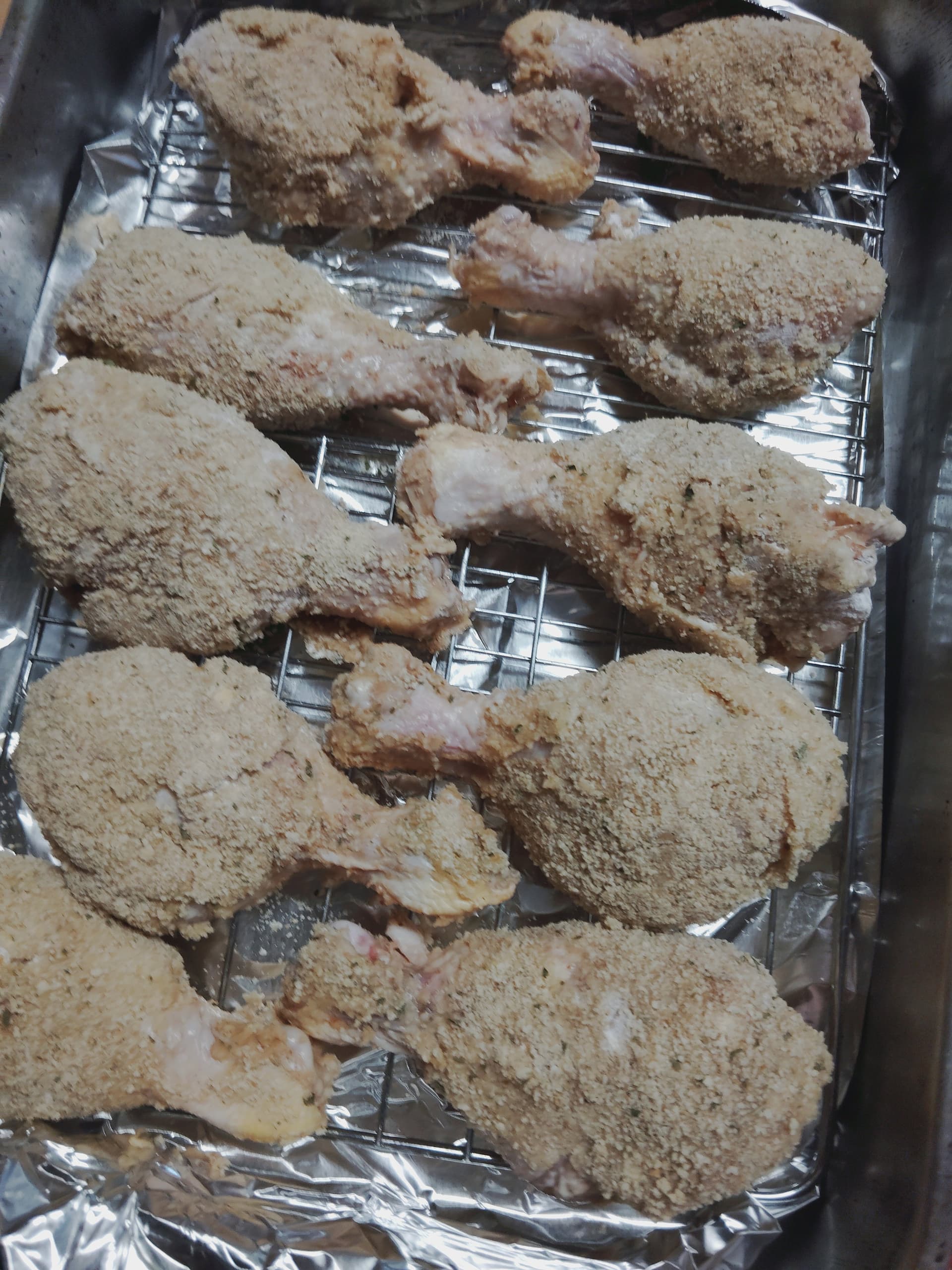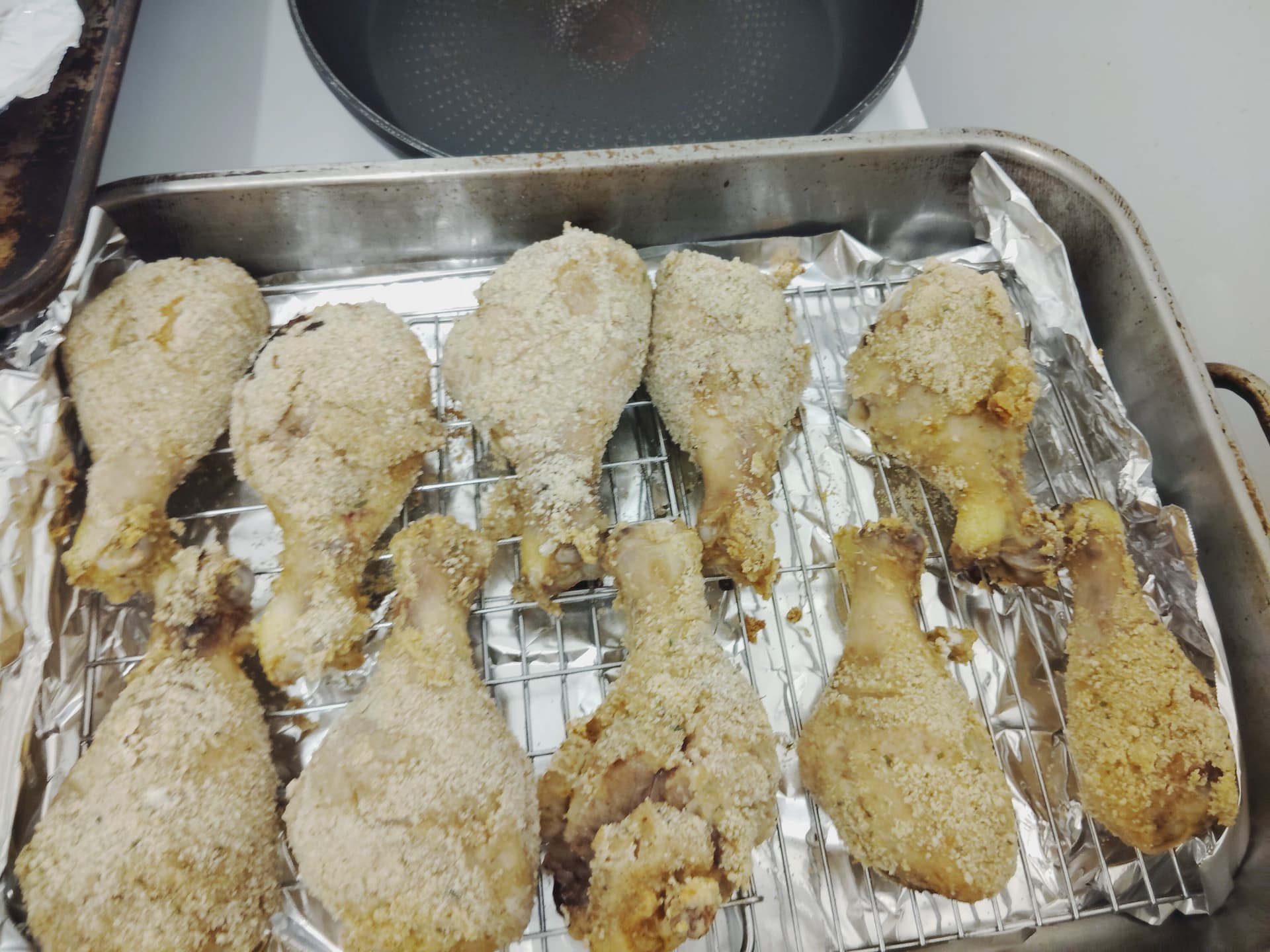 The large drumsticks came out too bloody. I tried to finish them all there are still a few super thick ones that I’ll have to microwave. 375 for 45 wasnt enough. Should have put them in the higher rack as the heating element was in the bottom but heat seemed to rise. Didn’t crisp well but I liked the taste. Cooked the rest of the onions just used the egg wash and left over flower and bread crumbs. Tasted strong fishy from the Worcestershire.