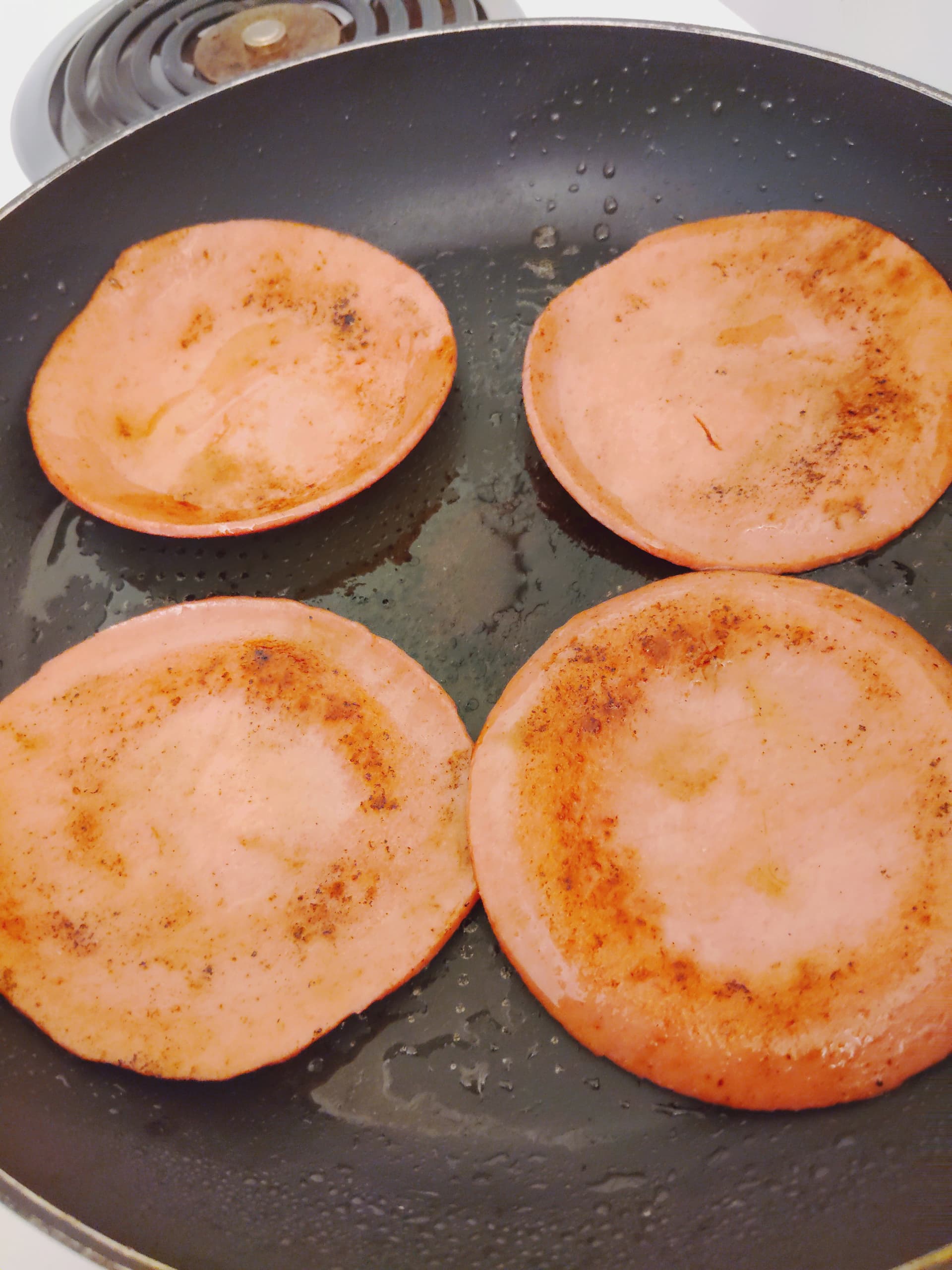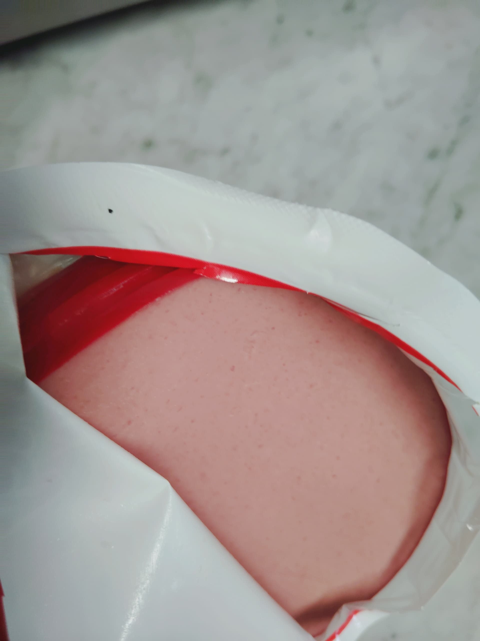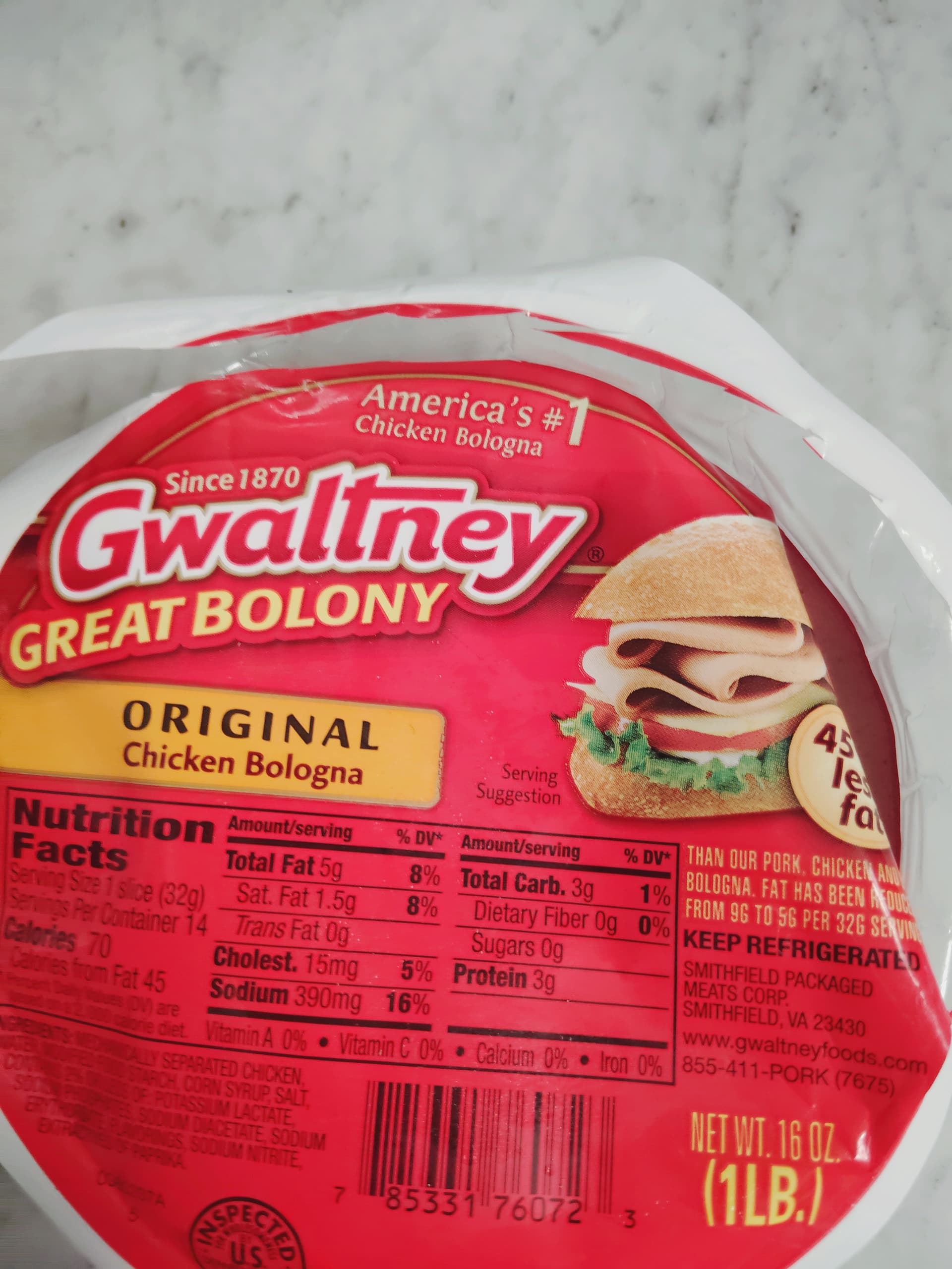 Back on topic this is my tribute breakfast To Terry Gene Bollea. The man and legend behind hulkamania with prayers, training, and vitamins. Well I got those three but I needed a good base so I just figured bolony. That’s the spelling on this pack which says America’s #1 chicken bologna since 1870. This is thick and actually has a red seal around the circumference I had to peel off. I used it like floss after the get the bolony (baloney) still attached.
