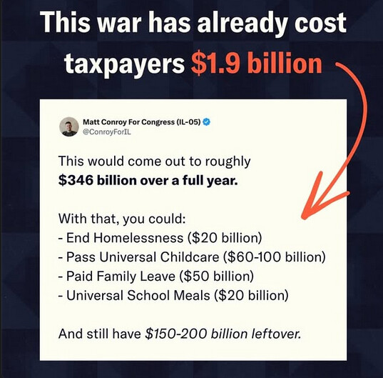 apparently lost lives are not a good reason for most trump supporters, but perhaps realising how much money from their paid tax it will cost (and how its not spend on usa or them personally) may make them care?
