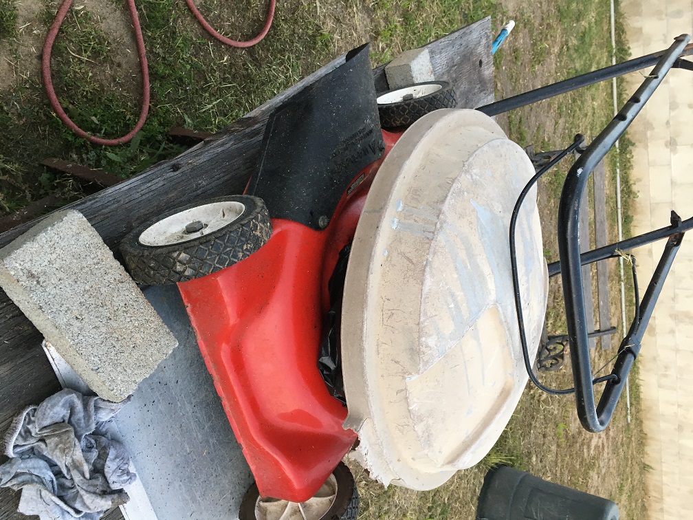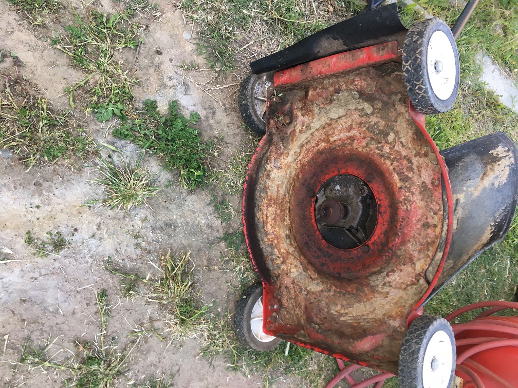 So some ugly blade sharpening I did with a file (I couldn’t even find my angle grinder but I am going to have to do it again or just buy a new balde, and I will prbably buy a new balde as I like this mower very much now instead of despising it. And when I say tired and need rest I know what I am talking about. If i remove and sharpen blade like with all that energy soaked up by it, it is like having an arm served at the shoulder joint. Great weight loss and that is what I got.