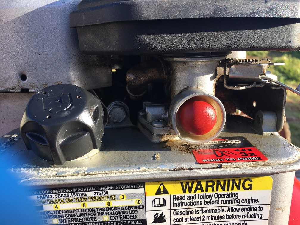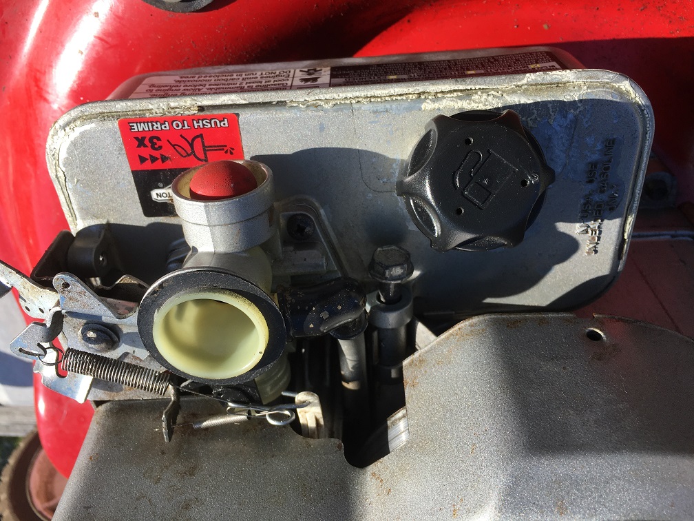 We had our roof redone and the crew that did was so careless that they flipped the lawnmower over and all the oil leaked into the engine and the fuel tanka nd carburetor. That and it being out in the lemenets with just a trash can lid over it and the 1000 pincer bugs that made a breeding nest there. So it looked okay after some cleanign but wouldn’t start and it took a damn lot of arm and connective to the body to pul that string handle. New spark plug and it would start for a while and then just die. I thought it was water in the fuel lines and low quality old gas, which it was but then it just started with the prime push button. If it starts and runs and then dies with just the prime it had to be the carburetor and lines.