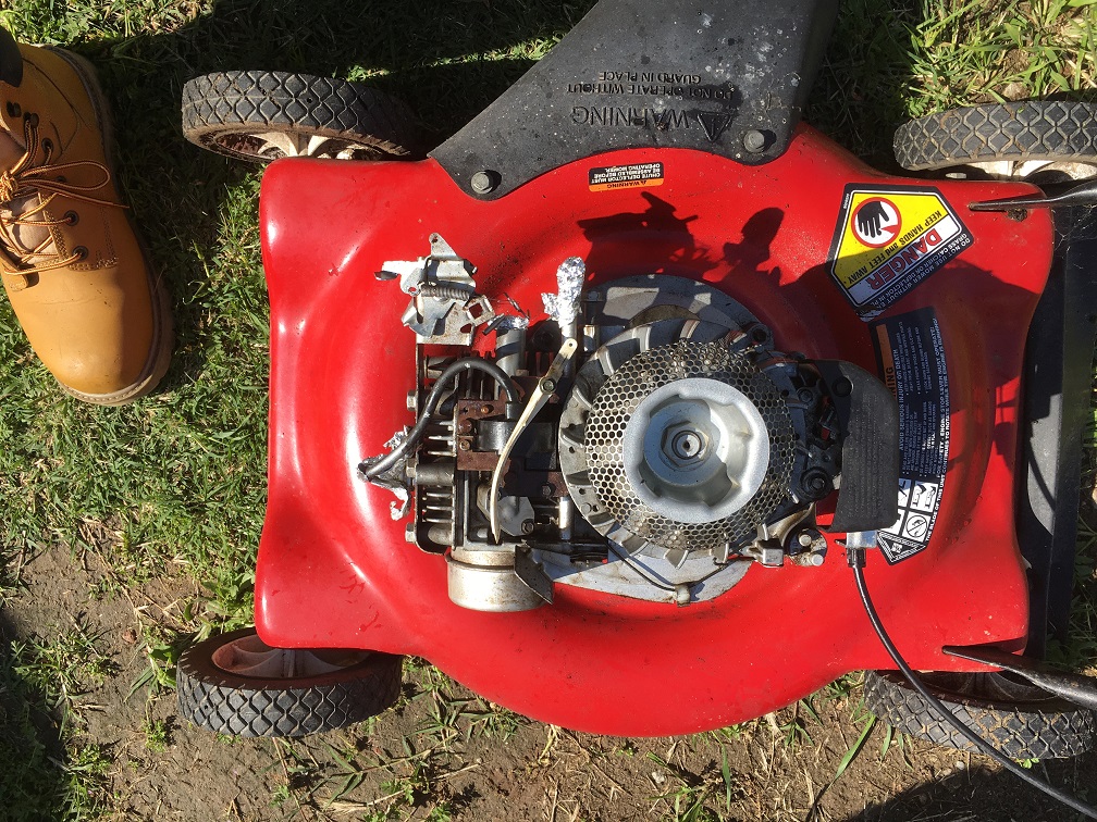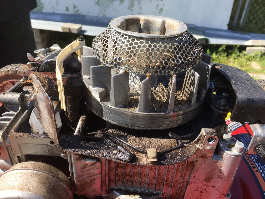 Just a word of caution. I removed the blade by hand and I should have lodged a 2x4. Despite this engine being impossible to start and taking massive pull force to do so it starts with the slightest tug now. The engine could actually be started by turning the lawnmower blade . So disconnect the spark plug. I also did an oil change and I did it sloppil because while turnign the blade I forced some oil out and I just pumped it out rotating the shaft with the pull string. Now when I looked at the filter the first tiem I thought oh my good how dirty how oily. But actually the black tray loosk like it holds oil and the filter is meant to be soaked in oil so I did that and added the rest of that 6.4 ounce synthetic oil to the engine for a perfect top off.