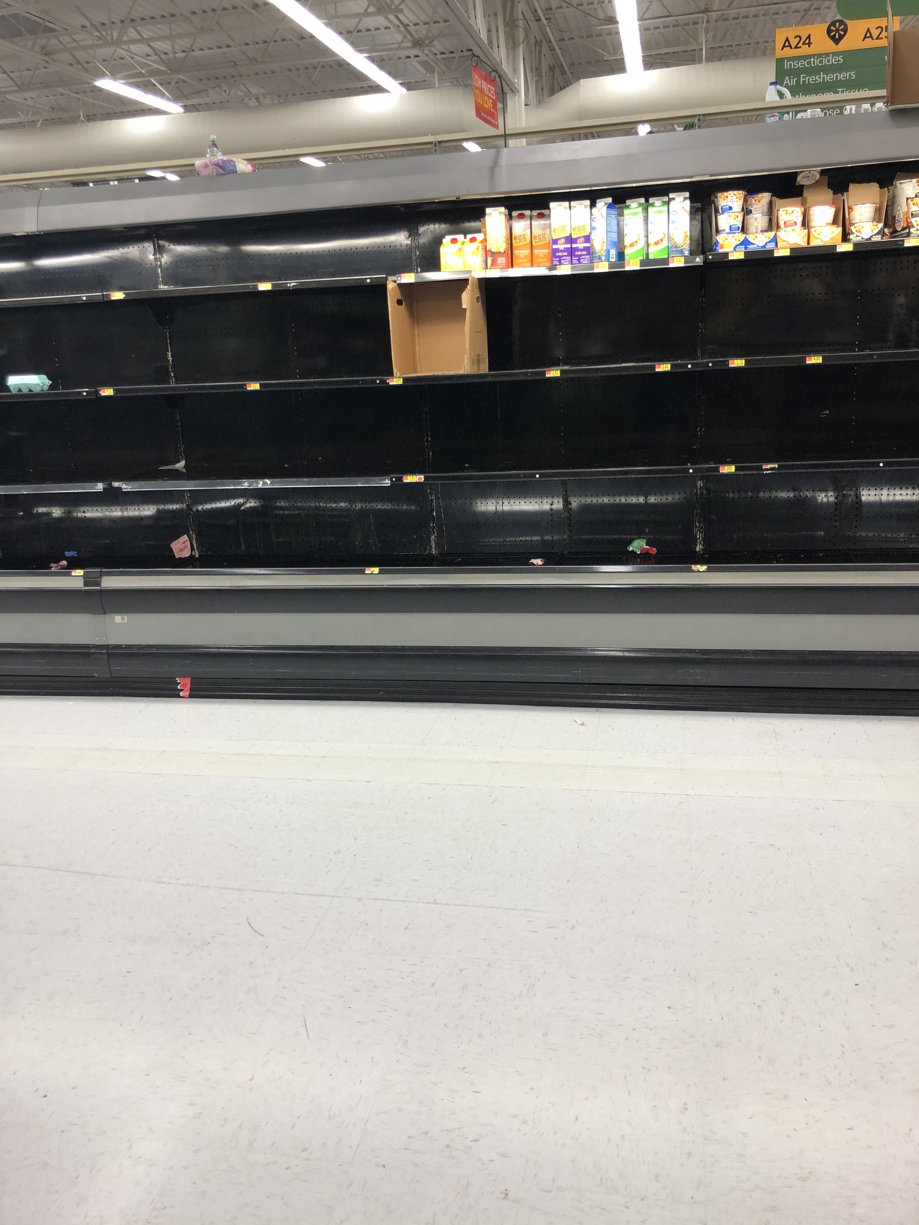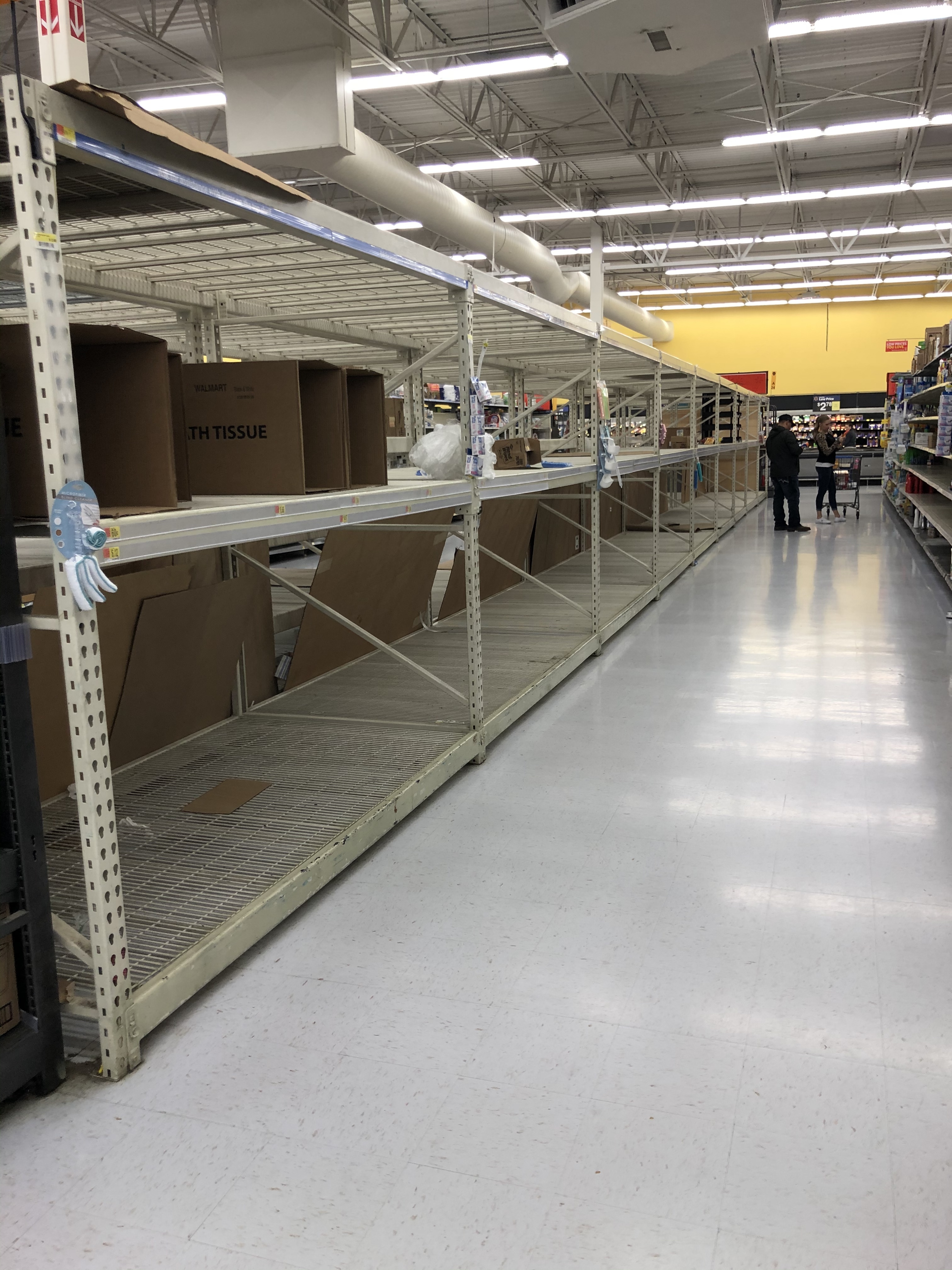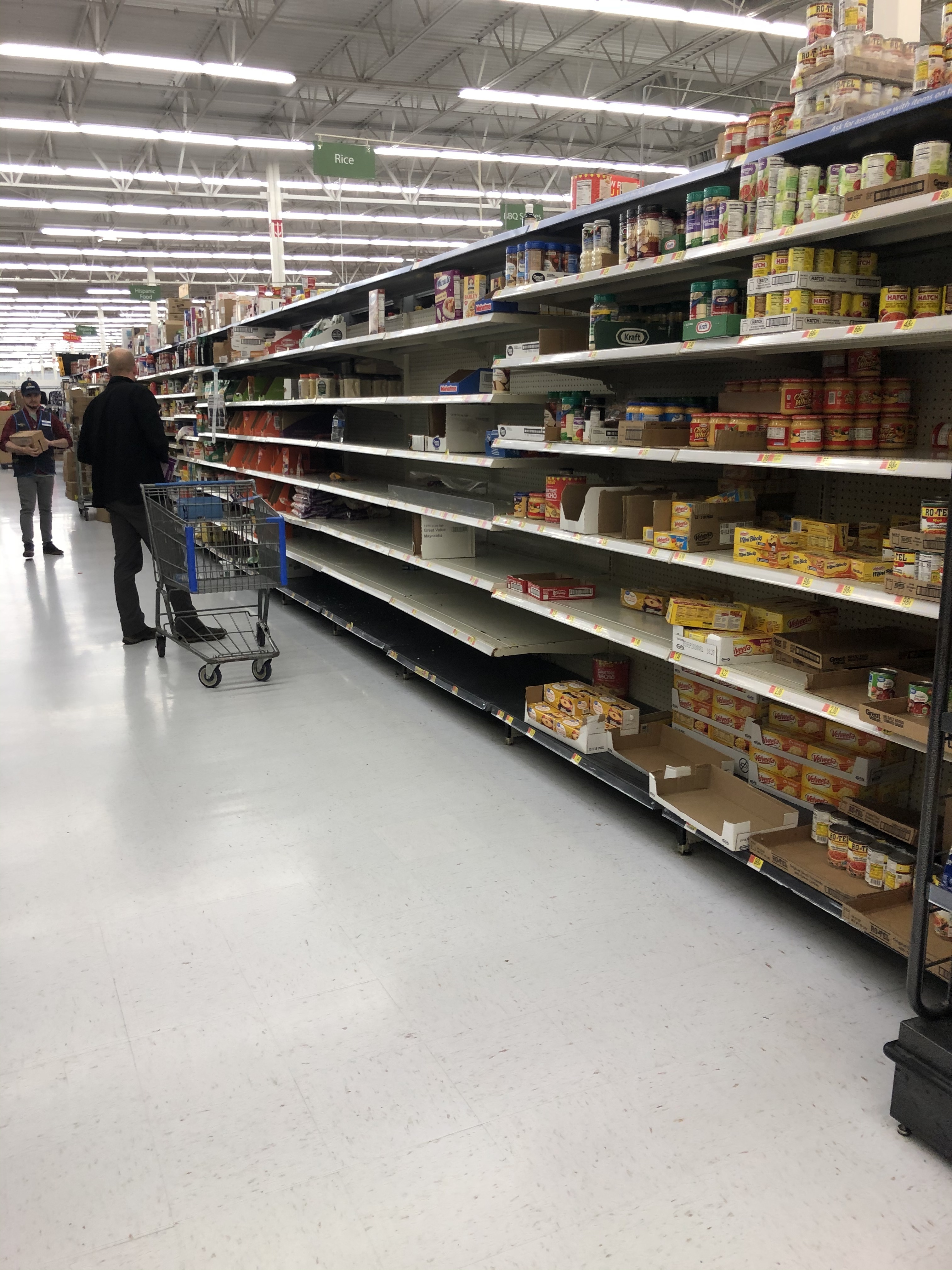 I don’t think it matters where you are. People seem to be in panic. Maybe people are just planning on staying home for a month but I’ve never seen anything like this in stores. If it gets worse, I have enough food for two weeks. Somehow, I have a feeling that’s not going to be enough but we had no desire to panic shop last night.