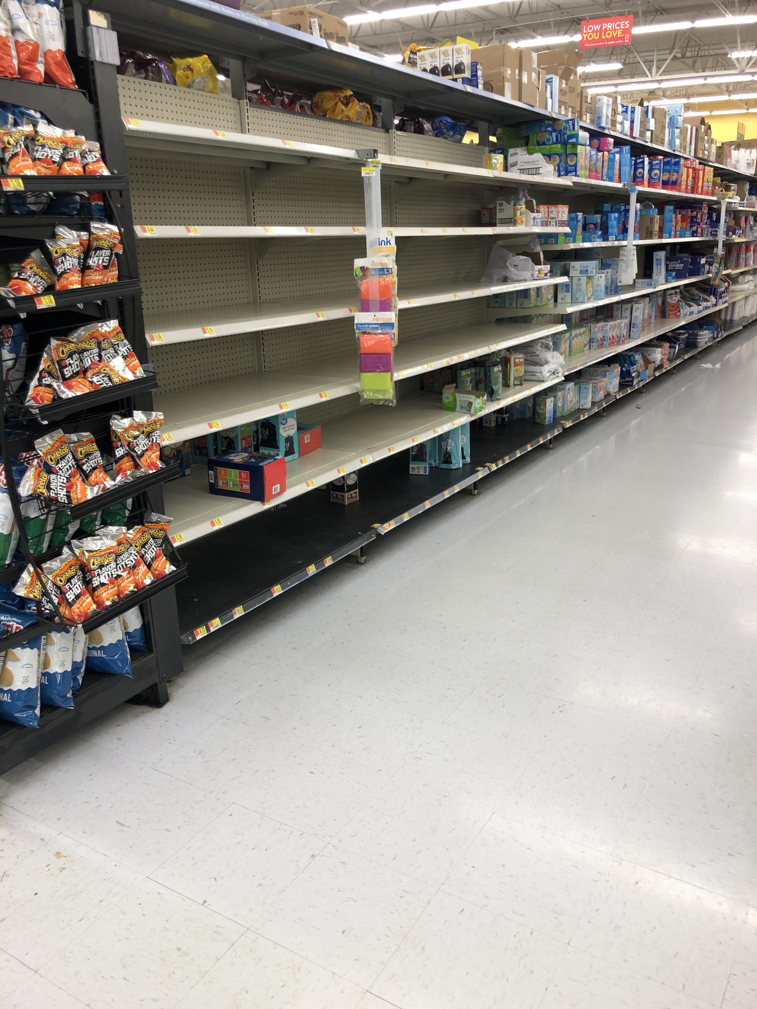 I would like to think the shelves would be restocked but if people are shutting down businesses over the virus, how is the food going to get back on the shelves?