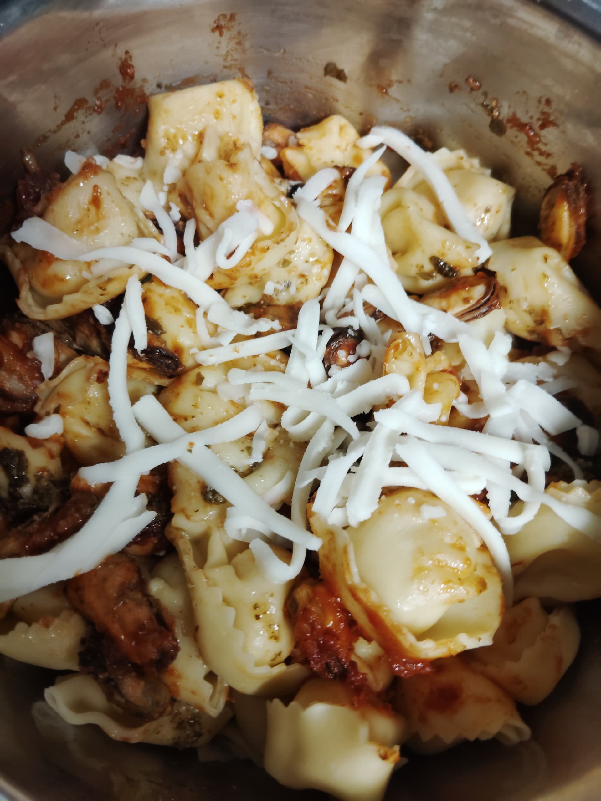 paste. These are 5 cheese and cook in 2 minutes. I added some basil pesto, some mozzarella and parmesan. I’ll shiver this off tonight.