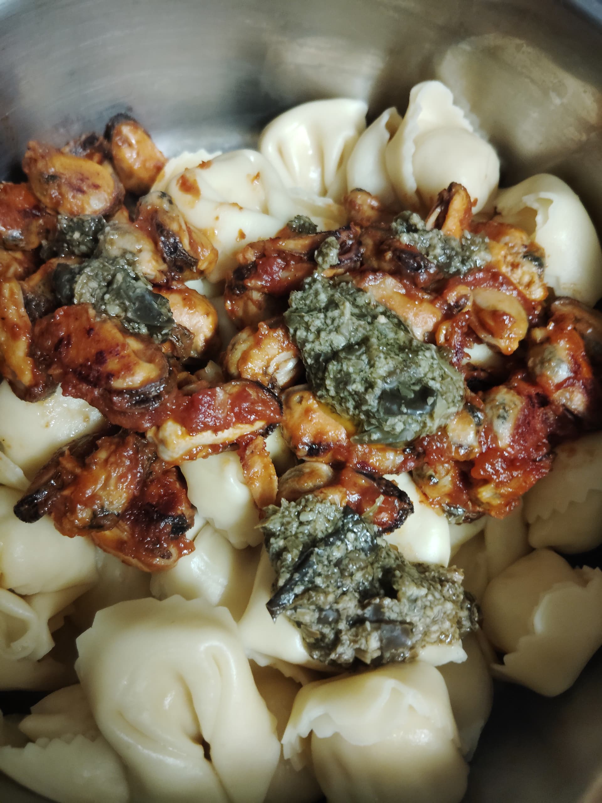 I ate more. I picked at these smoked oysters like I had a beak or bill. I had the idea of adding these mussels to some tortellini after cooking them with
