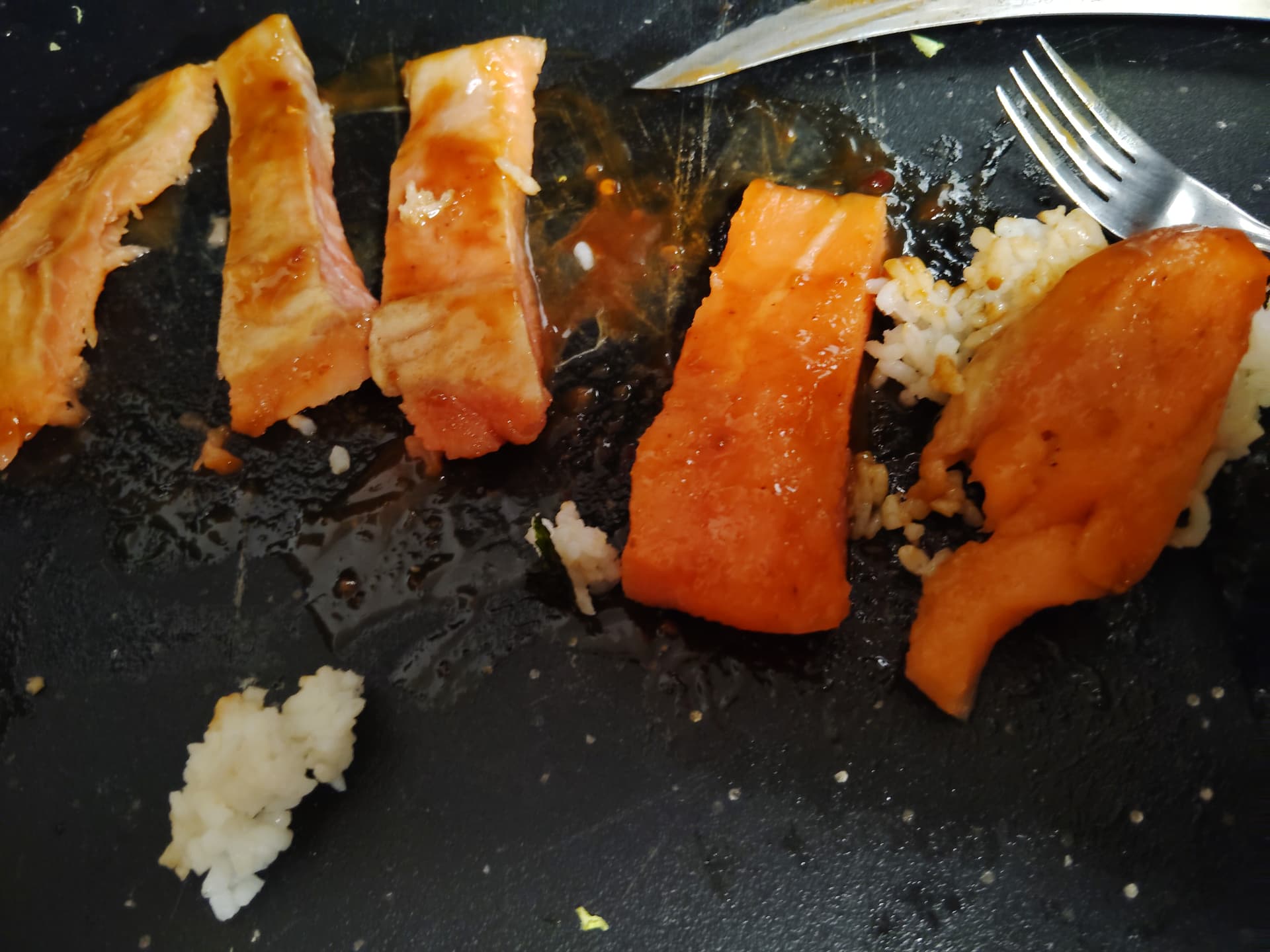 am not much of a fish fan but i dont think salmon should ever look like that? lol but nice! was it good and did you put ketchup on it before eating it all? ![]()