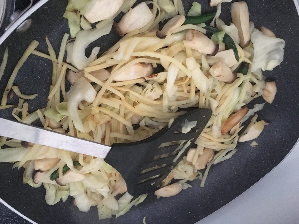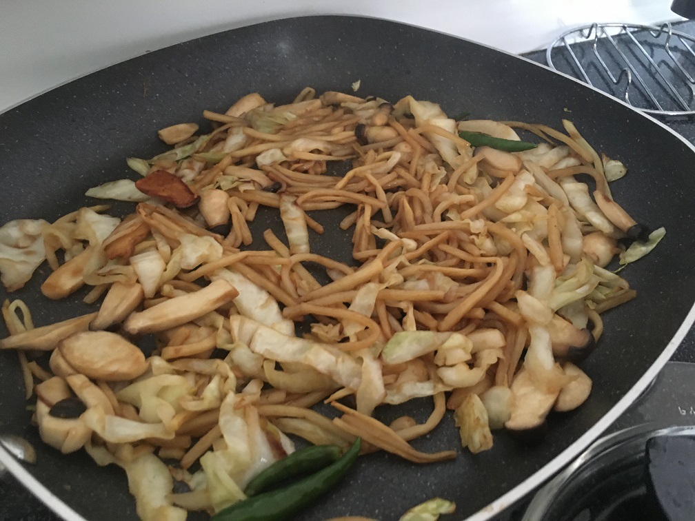 I posted and mentioned some stir fry I made. Simple just used some oyster sauce, cabbage, mushrooms, thai green chilis and sliced bamboo and oils and spray. The bamboo shoots came out well almost like noodles, so I was able to not eat my dish with noodles and trick myself with the bamboo shoots.