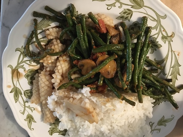 Iâm trying to max out my asian cuisine skills. A 1 to 1 vegetable to meat ratio is good for me. I usually have to do rice and sometimes it is a bit less than 1:1 sometimes more if no veggies. Some string beans I cooked.