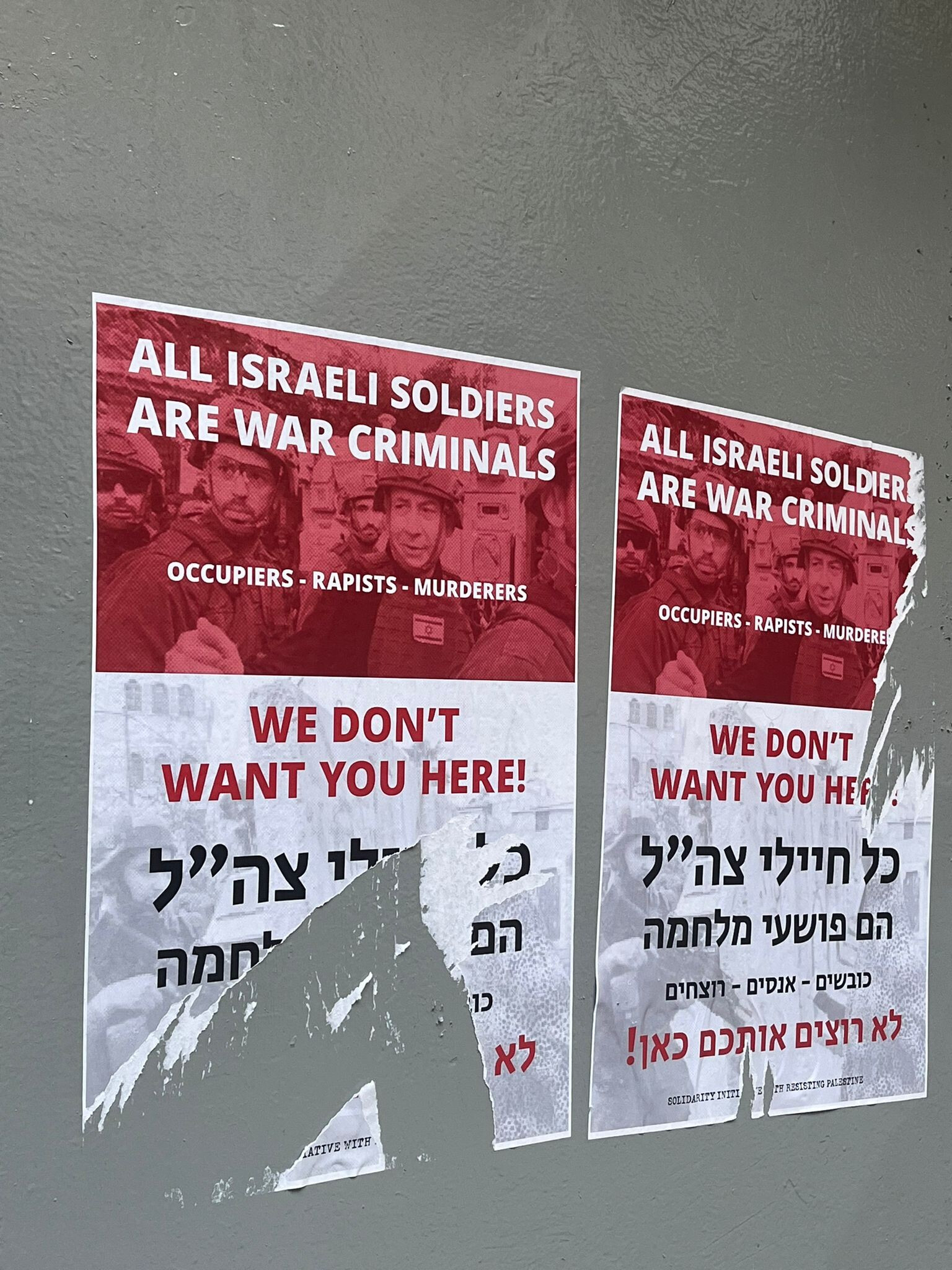 Hope they tear the posters all down. Hamas rapes and arsons and steals they bomb buses and kill. They hold ppl hostage for years. They shoot their fellow Gaza residents in the back of the head in the street including a journalist.