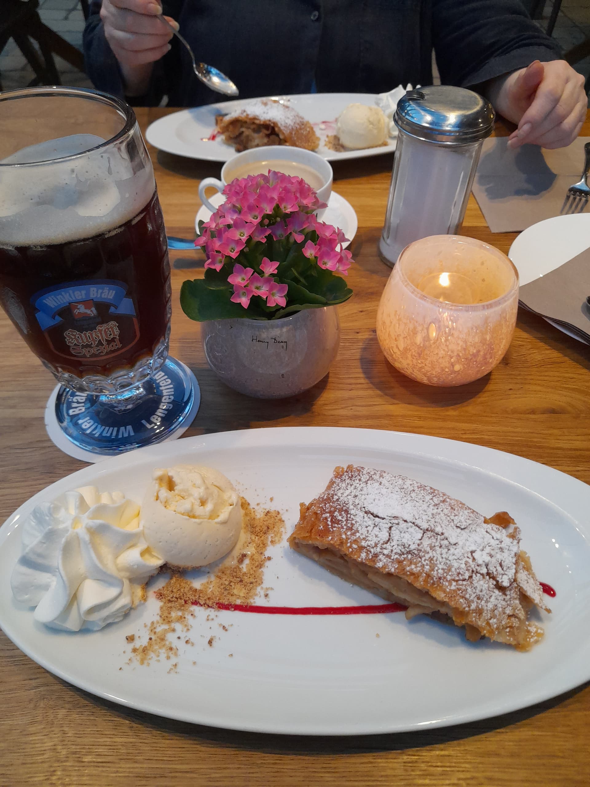 And then of course an Apfelstrudel. And the best beer I know. Yes, I know, but when alrrady at a restauraurant which has the best brewery, why coffee⦠![]()