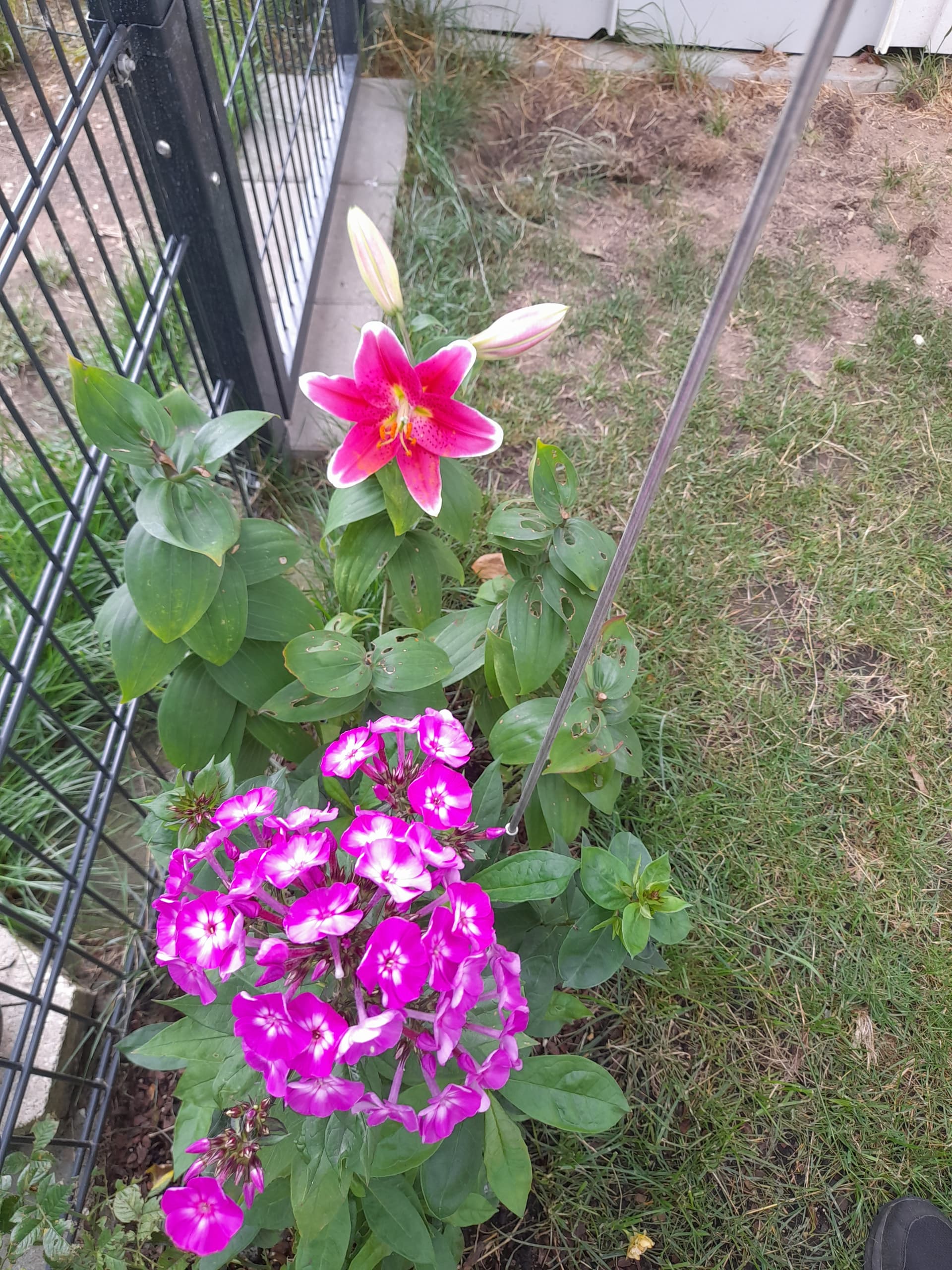 Took this photo this morning at about 05:30 am, when letting the dogs into the garden for their businesses, while I was making my first garden round to check if everything is alright and to enjoy the plants and blossoms as well as the fresh morning air. I love foxes and so I put up those 3 metal plates 2 years ago. Forgot already the text on the far left one. Reading it, as I was standing close enough - and laughed. That was the reason I bought that one, lol.