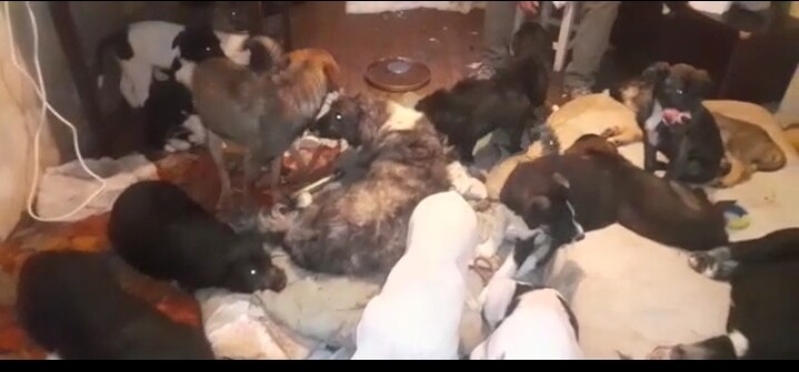 This is how the house of Adriana looks like since she put some of the shelter dogs into it, as there was no other place to keep them dry and save.