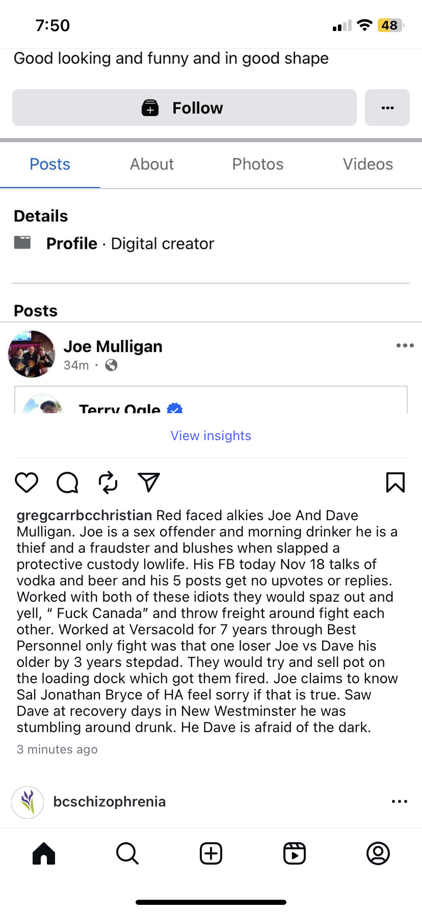 No up votes on his FB or any comments. He and Dave are red faced drunks in the photo.