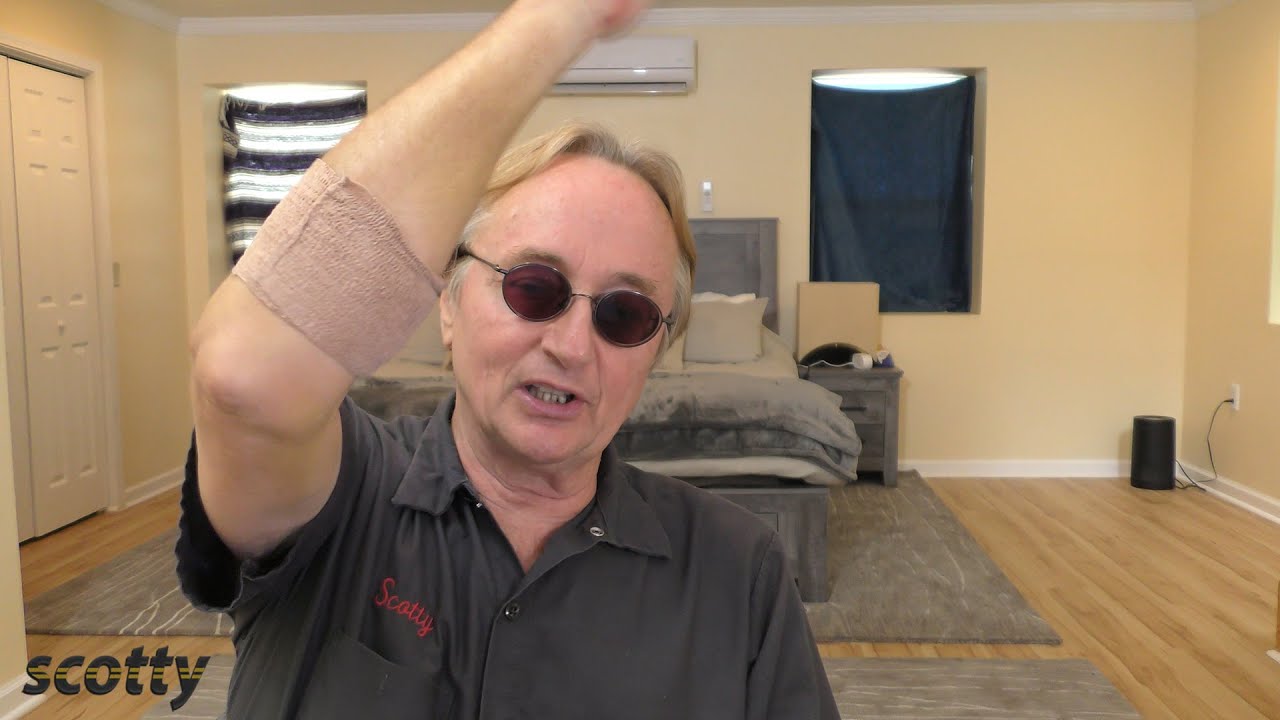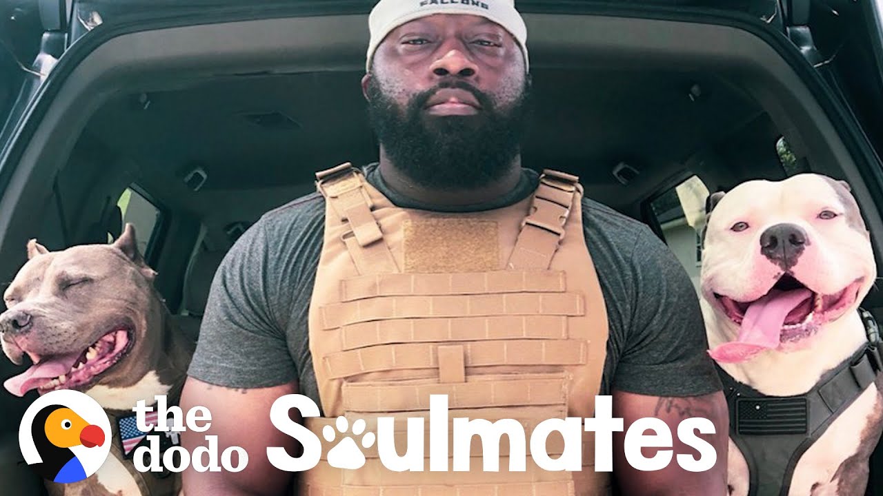 That poor man has to wear protective gear around his dogs.