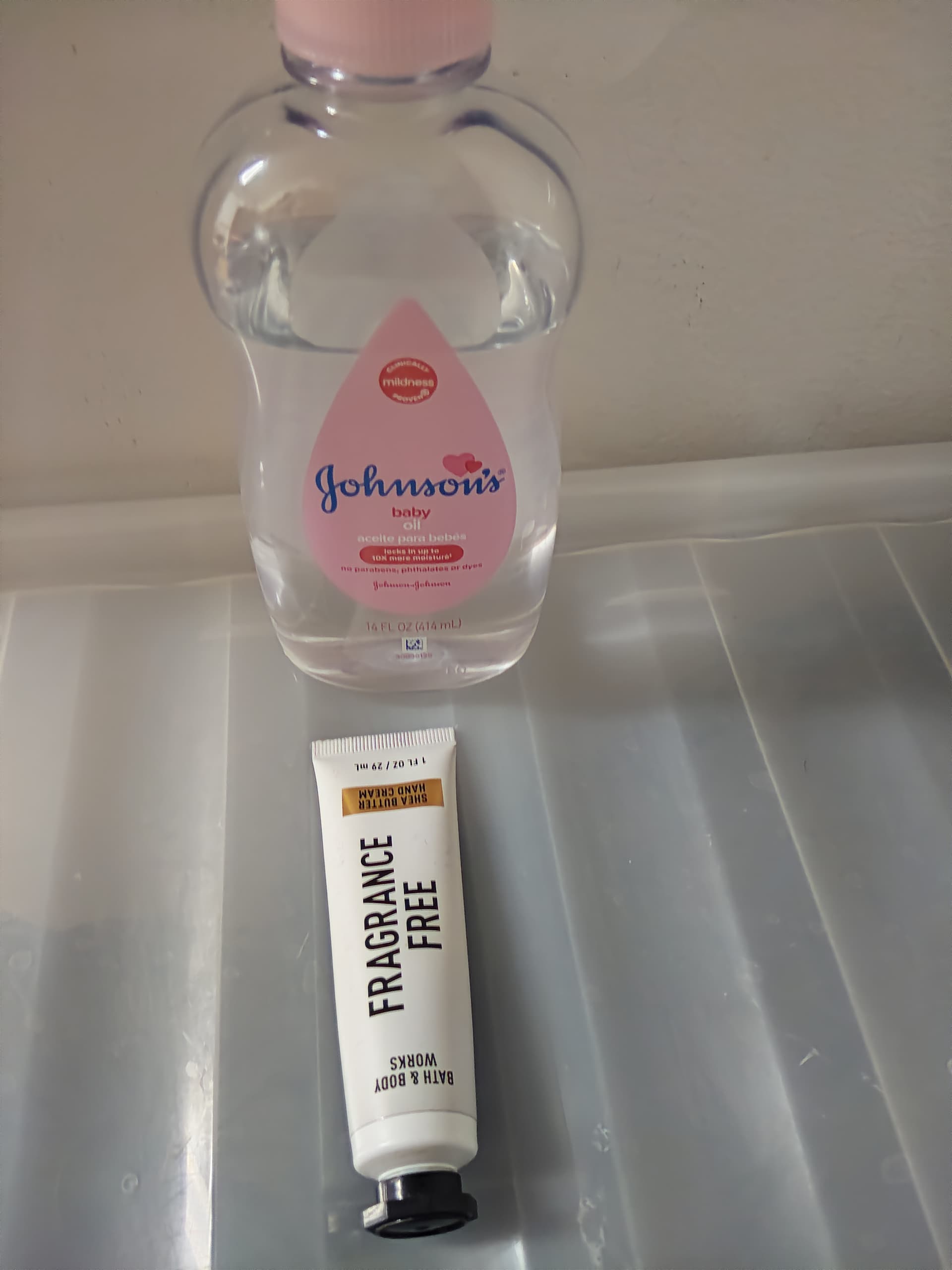 This tube Is scentless which I really like and keep in the vehicle for dry skin appearance emergencies. Also I revisited baby oil which applies and absorbs surprisingly quite well for me. It really seems a muscle oil because it is so relaxing I feel much more lithe and loose. The only drawback is the fragrance. There are other scented small bottles some people like but the scent is powerful and some people are really set off by baby oil.