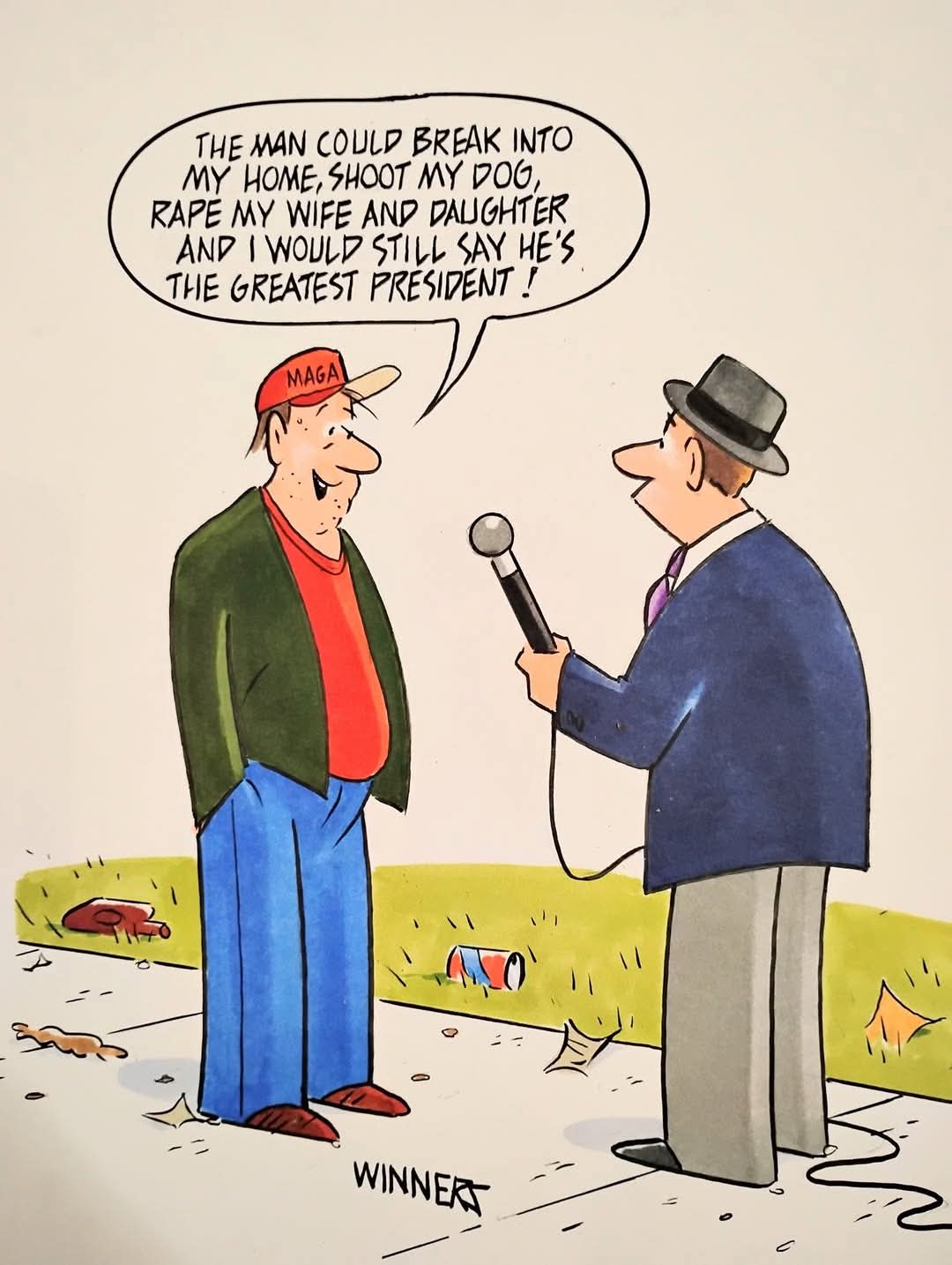 Because there is nothing funny in a notorious lying person, even worse if it’s the president of a superpower country, which one considered as an ally. Admittedly any sane person has to laugh about this absurdity and his utter primitive behaviour. But indeed, humour has nothing to do with it.