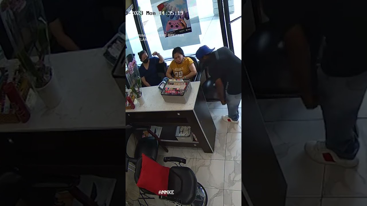 The lady that stepped outside told him that she had no money. I believe her. Most days I have no cash.